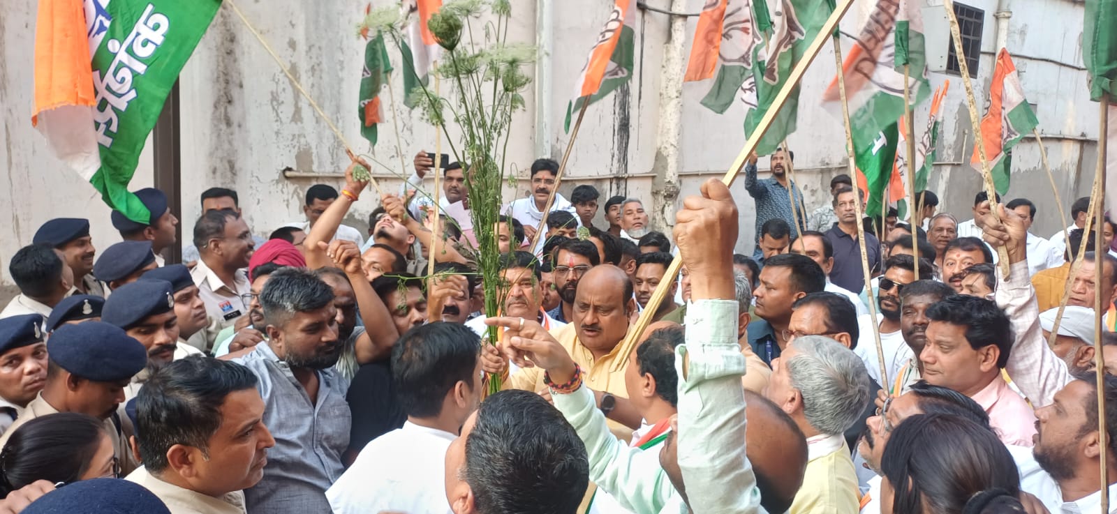 प्रदेश कांग्रेस कमेटी के निर्देश पर जिला कांग्रेस कमेटी कोरबा द्वारा पूर्व मंत्री जयसिंह अग्रवाल के नेतृत्व में टी पी नगर स्थित भाजपा दफ्तर का घेराव कर विरोध प्रदर्शन किया गया ।