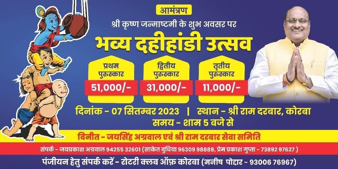सक्ती। नवगठित सक्ती जिले की स्थापना को एक साल पूरा होने के अवसर पर कलेक्ट्रेट परिसर सक्ती में 11 सितंबर को विधानसभा अध्यक्ष डॉ. चरण दास महंत के मुख्य आतिथ्य तथा राजस्व एवं आपदा प्रबंधन विभाग और जिले के प्रभारी मंत्री श्री जयसिंह अग्रवाल की अध्यक्षता में प्रथम वर्षगांठ समारोह का आयोजन होगा। सक्ती जिला गठन का प्रथम वर्षगांठ समारोह कलेक्ट्रेट परिसर सक्ती जेठा में शाम 6 बजे से विभिन्न कार्यक्रमों के आयोजन के साथ गरिमामय और भव्य रूप से आयोजित होगा।