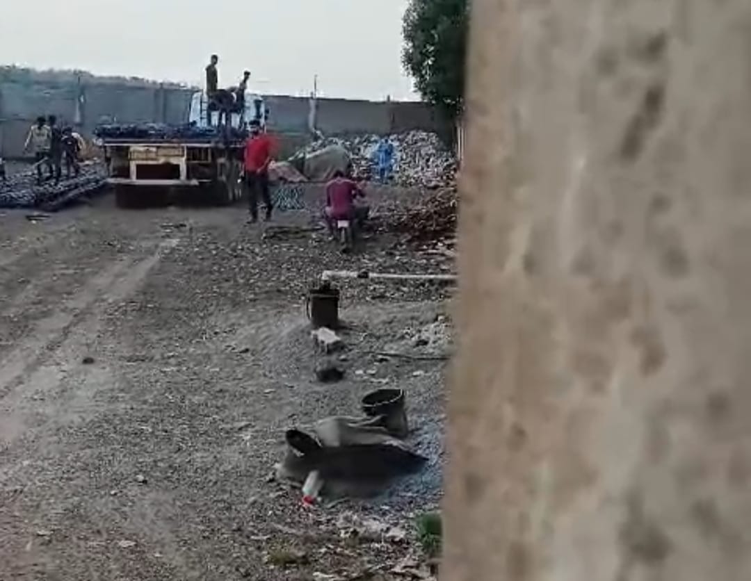 उन्होंने देखा कि एक ट्रेलर से लोहा उतारा जा रहा था और एक व्यक्ति गैस कटर से सरियों को काट रहा था।