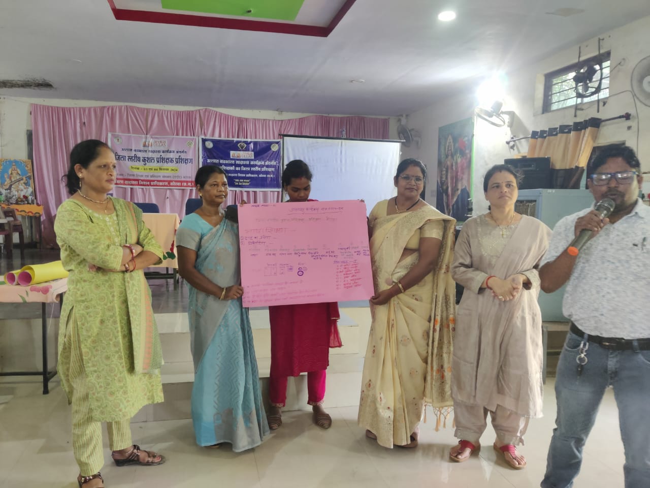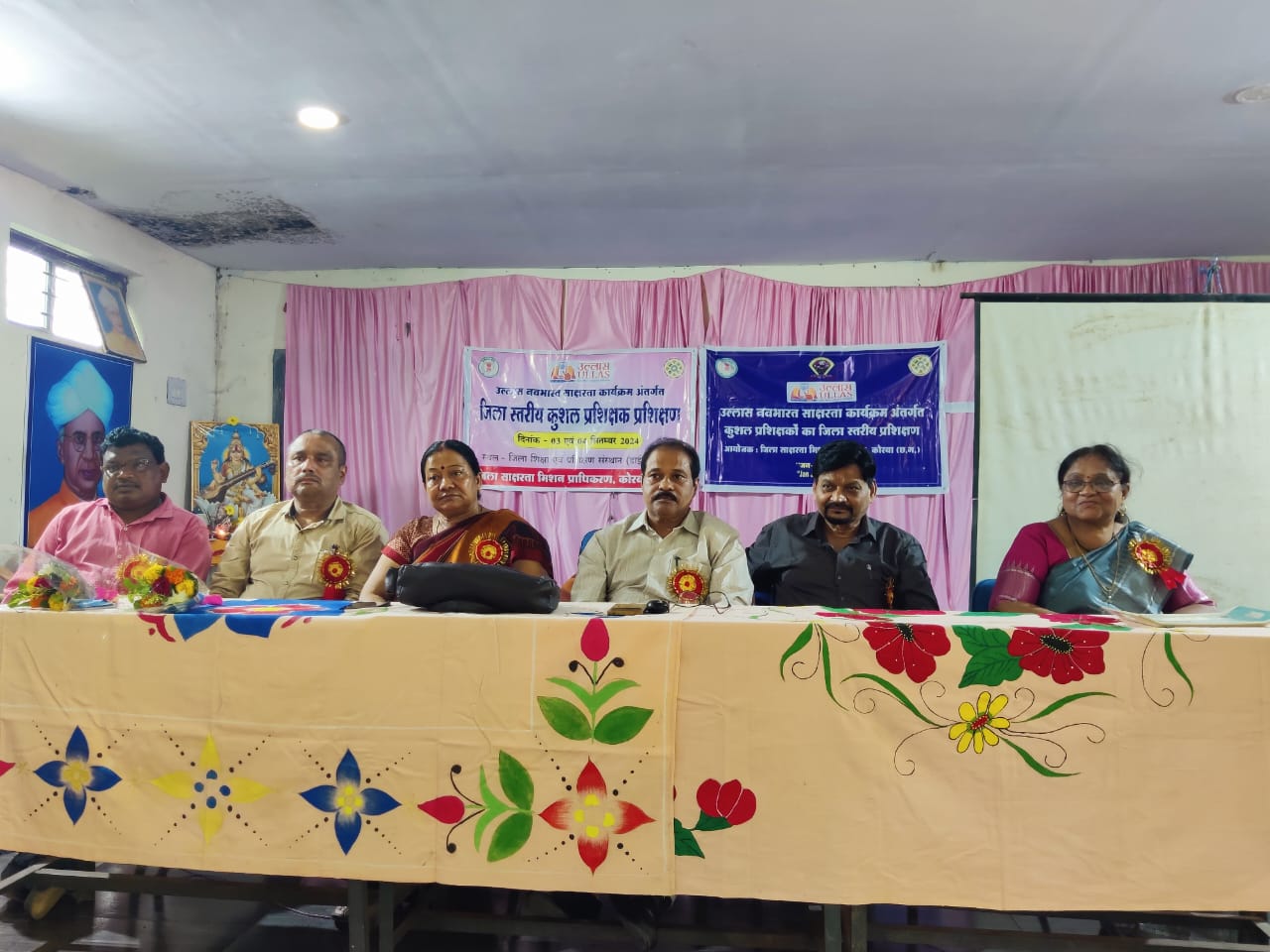 राज्य स्रोत समूह के मास्टर ट्रेनर्स.. डाइट कोरबा से व्याख्याता श्रीमती पदमा प्रधान ,श्रीमती जे.के .फ्लोरा.श्रीमती आशु गुप्ता .करतला विकासखंड से व्याख्याता श्री अशोक नायक .श्रीमती उपासना पाठक .श्री भूपेंद्र राठौर के द्वारा जिले से आए कुशल प्रशिक्षकों को प्रशिक्षित किया गया यह सभी अपने-अपने विकासखंड में जाकर वहां प्रशिक्षण देंगे प्रशिक्षण के प्रारंभ में ,,उल्लास नवभारत साक्षरता कार्यक्रम ,,के पांच घटक ,,बुनियादी साक्षरता एवं संख्या ज्ञान ,महत्वपूर्ण जीवन कौशल ,(डिजिटल, वित्तीय ,कानूनी, मतदान, पर्यावरण ) व्यावसायिक शिक्षा, बुनियादी शिक्षा ,सतत शिक्षा विषय को व्यवहारिक जीवन के विभिन्न उदाहरण के द्वारा समझाया गया ।