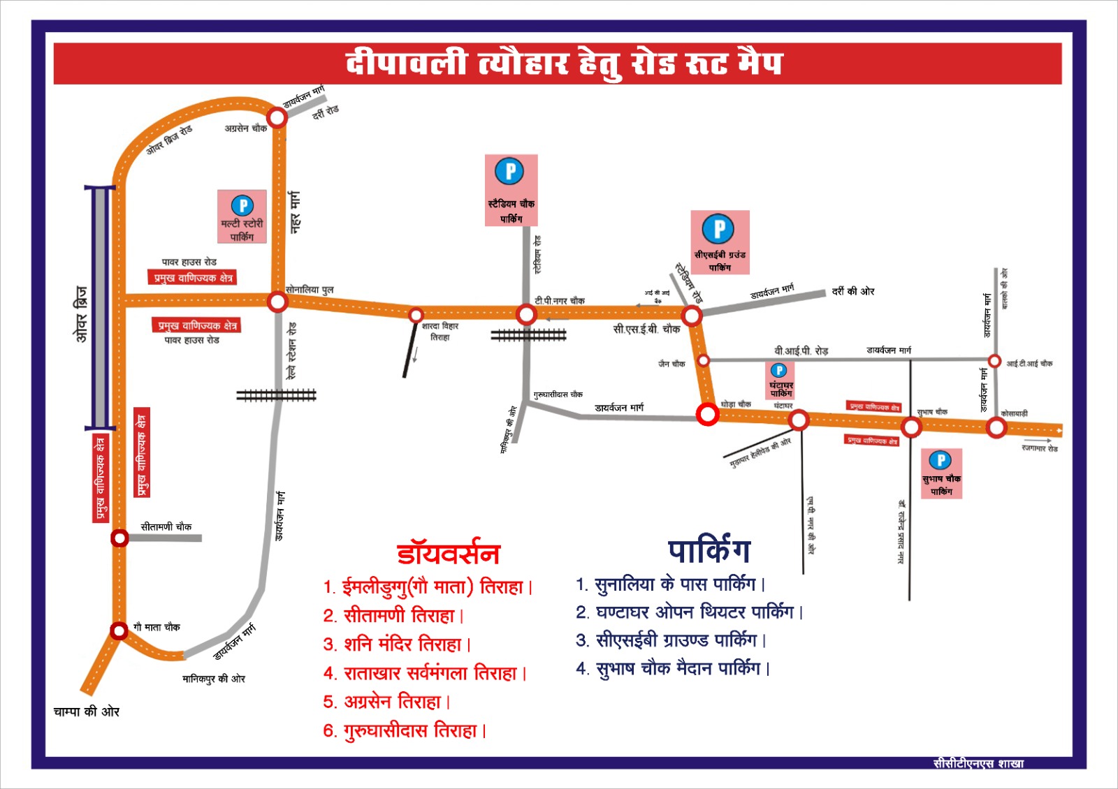 : दीपावली पर्व को लेकर कोरबा पुलिस द्वारा डायवर्सन और पार्किंग मैप जारी।
