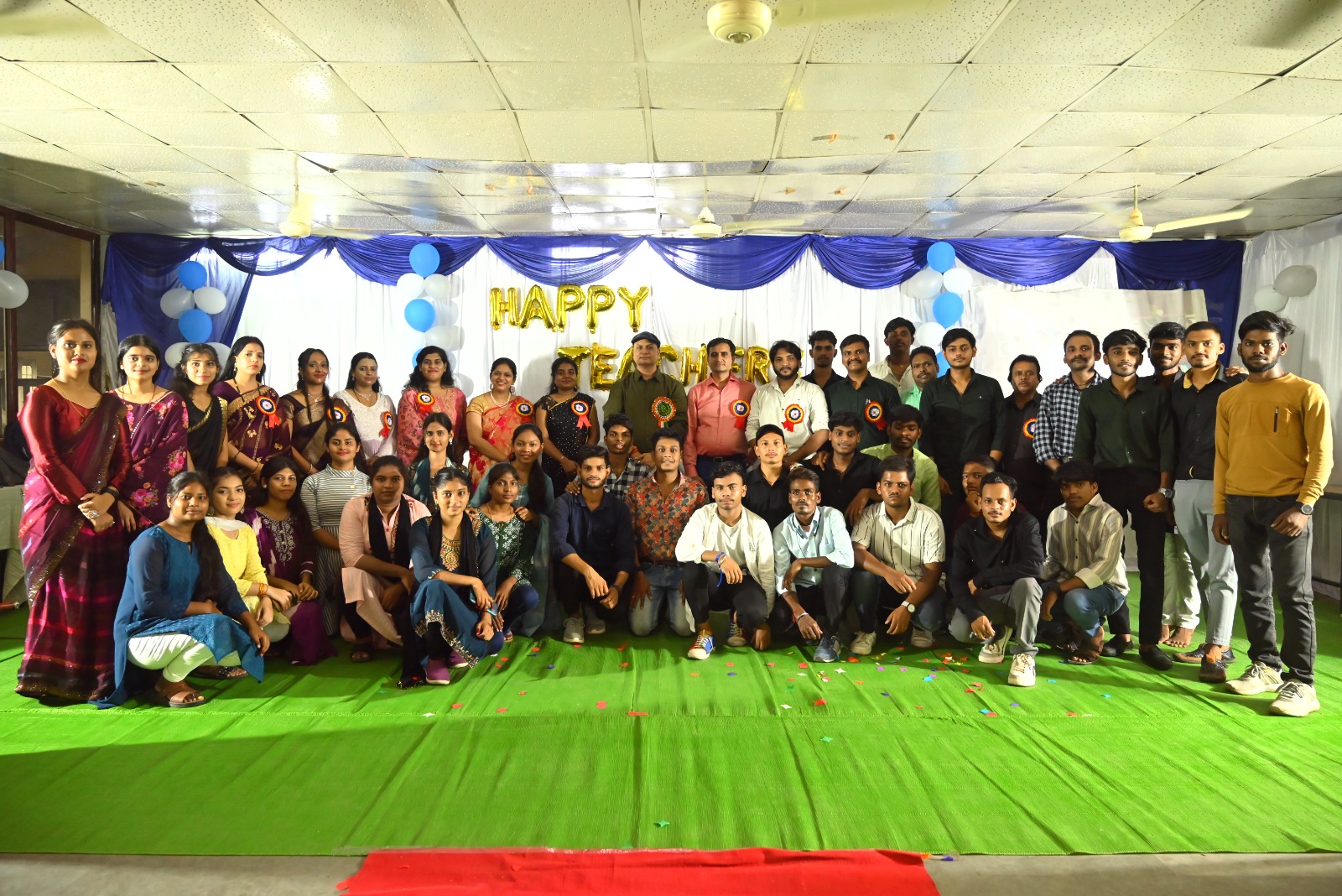 महाविद्यालय के निर्देशक राजेश अग्रवाल जी ने अपने उद्बोधन में कहा कि छात्रों को स्वयं के छात्र जीवन के अस्मरणीय अनुभवों को छात्रों के साथ साझा किया कि किस प्रकार एक शिक्षक दीये की तरह जलकर छात्रों एवं समाज में शिक्षा का प्रकाश फैलाता है जिससे विद्यार्थियों का सर्वांगीण विकास हो सके और बदले में समाज के अंतिम पायदान पर खड़े व्यक्ति को भी शिक्षा प्राप्त हो सके, वहीं उन्होने छात्रों द्वारा सास्कृतिक कार्यक्रमों के लिए छात्रों को बधाई दी एवं कहा कि इस प्रकार के कार्यक्रमों से विद्यार्थियों में संगठन, व्यवहार कुशलता एवं समय प्रबंधन की सीख मिलती है तथा आगे बढ़ने प्रेरणा मिलती है, कार्यक्रम के अंत में उपस्थित शिक्षक व शिक्षिकाओं को छात्र-छात्राओं द्वारा स्वलपाहार व स्मृति चिन्ह भेटकर एवं शिक्षको का पैर छुकर आर्शिवाद प्राप्त किया।