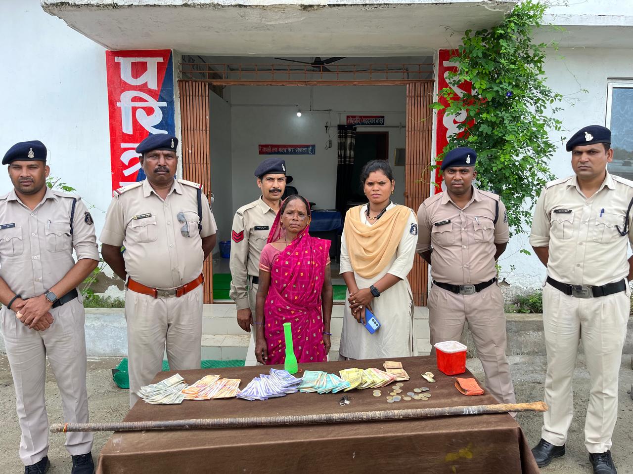 कोरबा श्रीमान पुलिस अधीक्षक महोदय श्री सिद्धार्थ तिवारी, अतिरिक्त पुलिस अधीक्षक महोदया कटघोरा श्रीमती नेहा वर्मा के निर्देशन एवं अनुविभागीय पुलिस अधीकारी श्री पंकज ठाकुर तथा थाना प्रभारी धर्म नारायण तिवारी के मार्गदर्शन मे पुलिस सहायता केन्द्र जटगा प्रभारी धानंजय सिंह नेटी द्वारा प्रार्थी राजेन्द्र यादव निवासी हाथीदर जटगा की रिपोर्ट पर अपराध क्रमांक 303/2024 धारा 331(4),305(2) बी0एन0एस0 कायम कर अज्ञात चोर व चोरी गयी मशरूका नगदी व सोने चांदी के जेवरात का पता तलाश दौरान जरिये मुखबीर से सूचना मिली की गांव की राम बाई बहुत सारा पैसे रखकर गांव मे घुस रही है तथा लोगों को दारू मुर्गा खिला रही है।संदेह है कि राजेन्द्र यादव के घर मे राम बाई चोरी की होगी कि सूचना पर हमराह स्टाफ आरक्षक 691,698, महिला आरक्षक 544 को साथ लेकर संदेही आरोपीया का पता तलाश किया जो हाथीदर जटगा में मिली जिसे पुछताछ किया गया जो दिनांक 28.07.2024 को रात्रि 01:30 बजे लगभग घटना स्थल राजेन्द्र यादव के घर पर अपने पुत्र बबलू उर्फ शिव नारायण और अपचारी पुत्र के साथ मिलकर दिवाल को सब्बल से तोडकर नगदी रकम 70000रू व सोने चांदी के जेवरात की चोरी करना स्वीकार की।