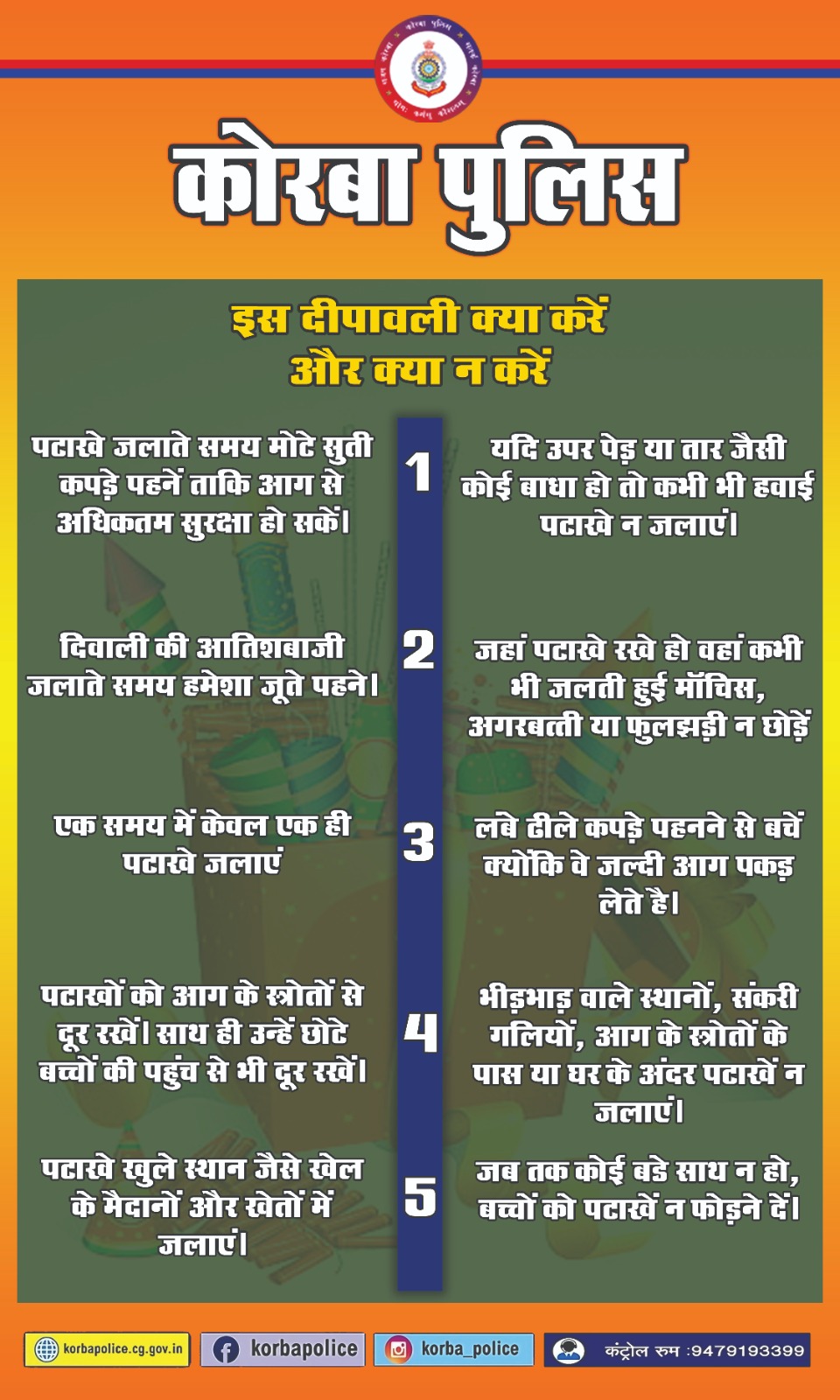 : दीपावली के अवसर पर कोरबा ने जारी की महत्वपूर्ण दिशा निर्देश।