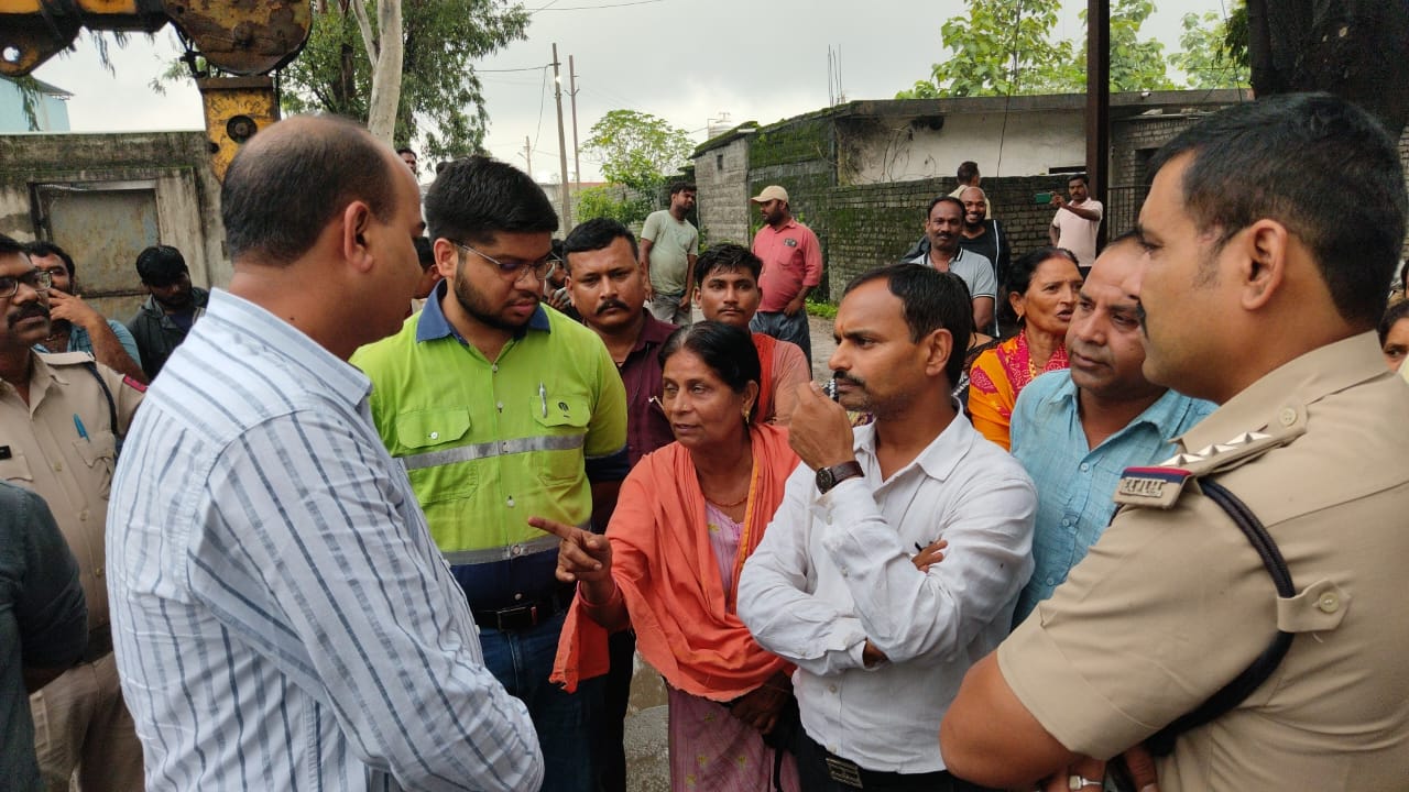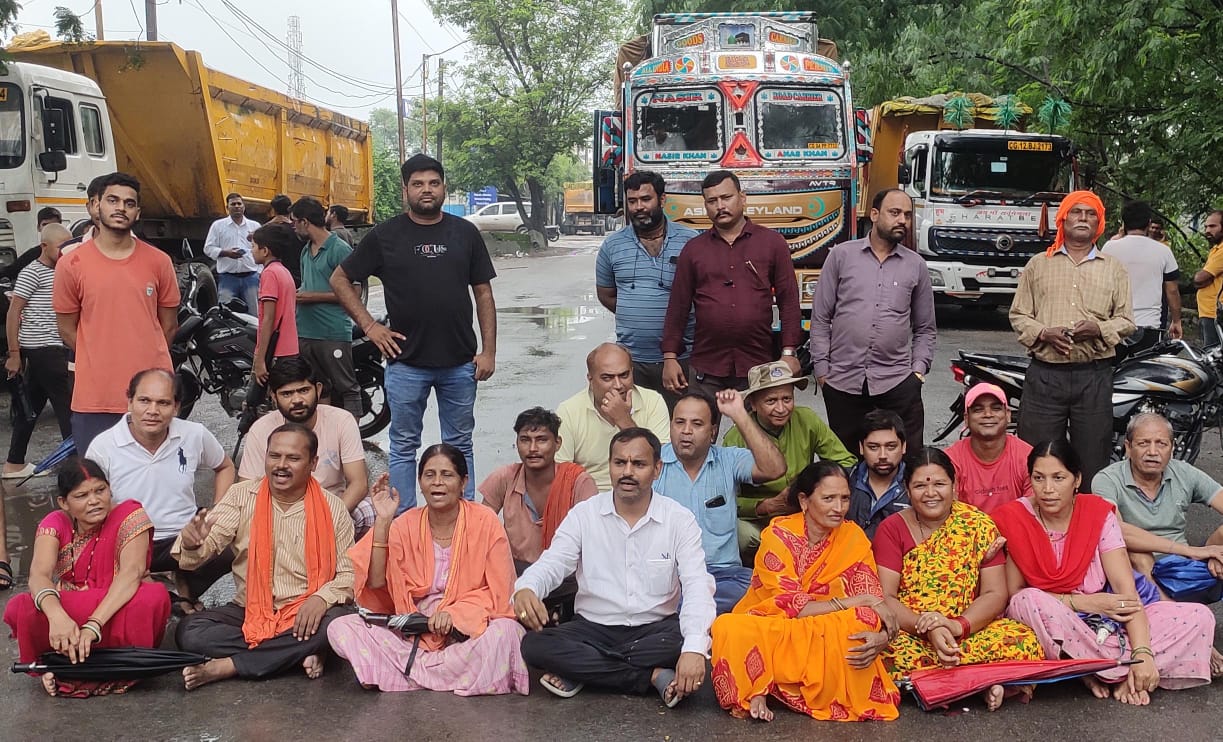 प्रभावित जनता अपने पार्षद एवं नेता प्रतिपक्ष हितानंद अग्रवाल के साथ बैठी धरने पर, किया चक्का जाम।