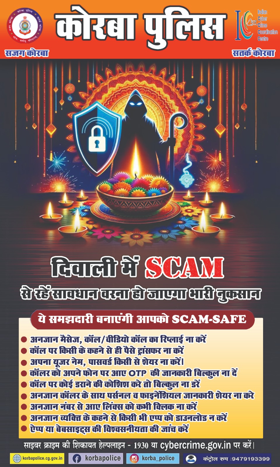 : दीपावली के अवसर पर कोरबा पुलिस ने साइबर स्कैम से बचने के लिए जारी की एडवाइज़री