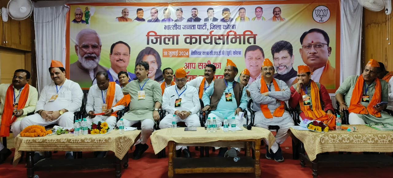 कोरबा( न्यूज उड़ान) भारतीय जनता पार्टी जिला कोरबा विस्तारित जिला कार्य समिति की बैठक 18 जुलाई 2024 को सीनियर क्लब सीएसईबी पूर्व कोरबा में रखी गई ।