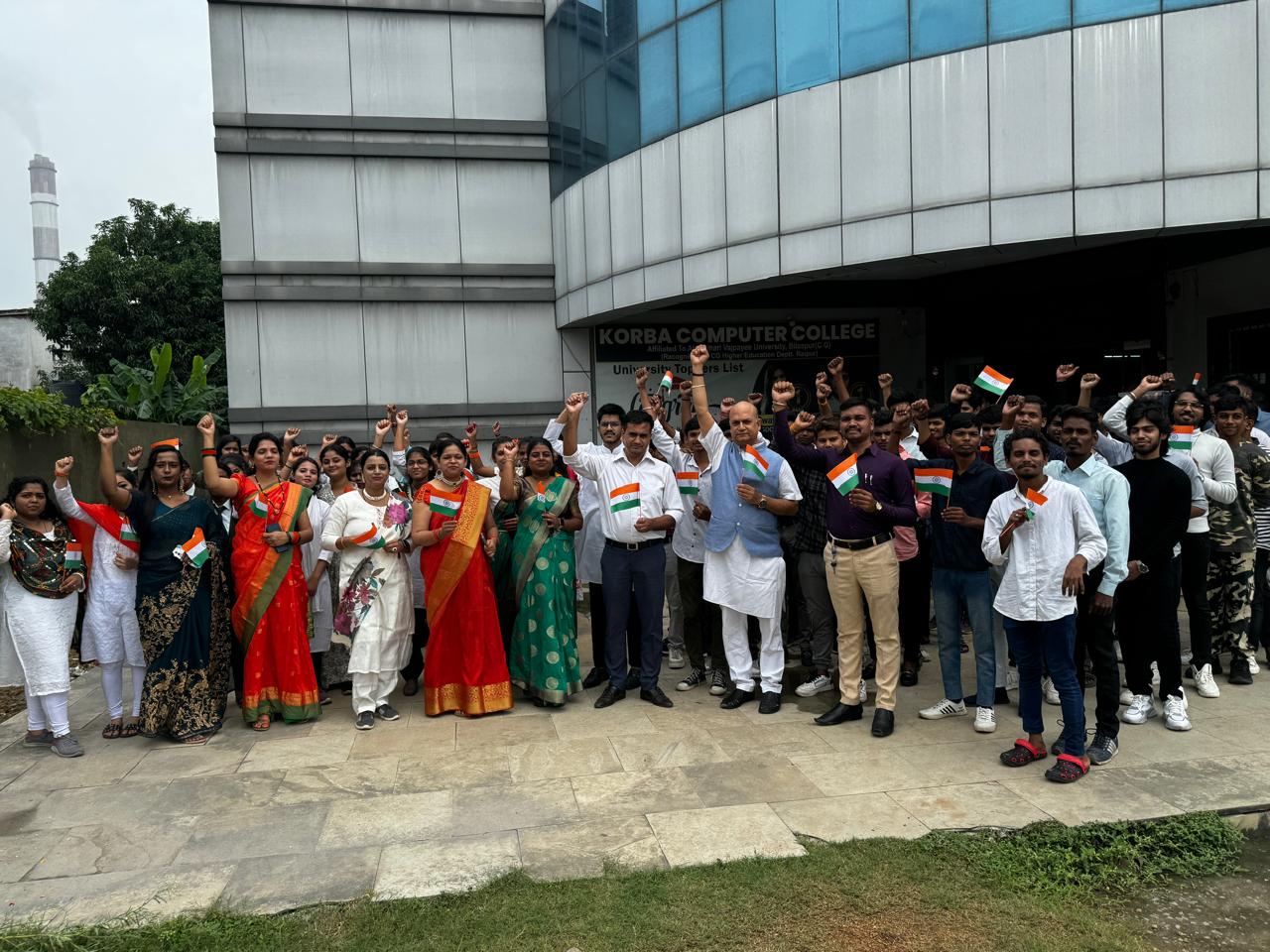 कोरबा (न्यूज उड़ान) कोरबा शिक्षण समिति द्वारा संचालित कोरबा कम्प्यूटर महाविद्यालय में हर्षोल्लास के साथ महाविद्यालय के निर्देशक राजेश अग्रवाल जी के मुख्य आतिथ्य तथा शिक्षकों, छात्र-छात्रों एवं पालकों की गरिमामय उपस्थिति में 78 वें स्वतंत्रता दिवस देशभक्तिमय माहौल में मनाया गया।