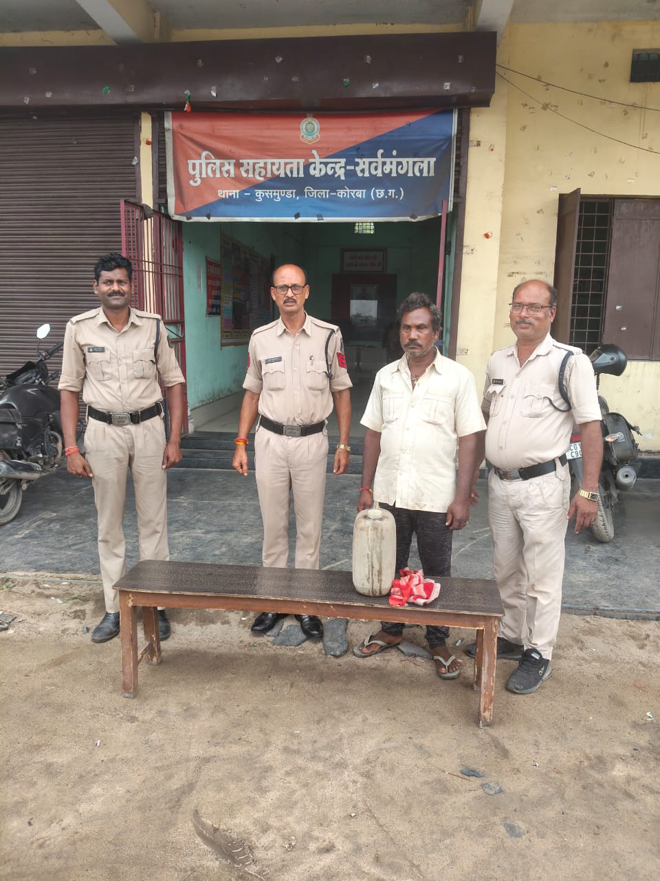 कोरबा (न्यूज उड़ान) मामले का संक्षिप्त विवरण इस प्रकार है कि पुलिस अधीक्षक सिध्दार्थ तिवारी कोरबा के निर्देश पर एवं यु.बी.एस. चौहान अतिरिक्त पुलिस अधीक्षक कोरबा, श्रीमान् रविन्द्र कुमार मीना नगर पुलिस अधीक्षक दर्री, श्रीमान् रूपक शर्मा थाना प्रभारी महोदय कुसमुण्डा के मार्गदर्शन में अवैध शराब विक्रेताओं पर सख्त कार्यवाही के संबंध में दिशा निर्देश प्राप्त होने के परिपालन में पु.स.के. सर्वमंगला के द्वारा आज दिनांक 12.09.2024 को सोनपुरी पुलिया के पास मेन रोड में शराब रेड कार्यवाही किया गया मौके पर आरती सारथी के द्वारा एक नीले रंग के प्लास्टिक के थैला में अलग अलग प्लास्टिक के पाउच में बंधा 06 पाउच प्रत्येक में एक-एक लीटर कुल 06 लीटर एवं 04 अलग अलग प्लास्टिक के पाउच में प्रत्येक में 1-1 पाव कुल 01 लीटर कुल जुमला 07 लीटर कीमती 700 रूपये मिला जिसे आरोपिया आरती सारथी से जप्त कर आरोपिया को गिरफ्तार कर न्यायिक रिमाण्ड में पेश किया गया है।