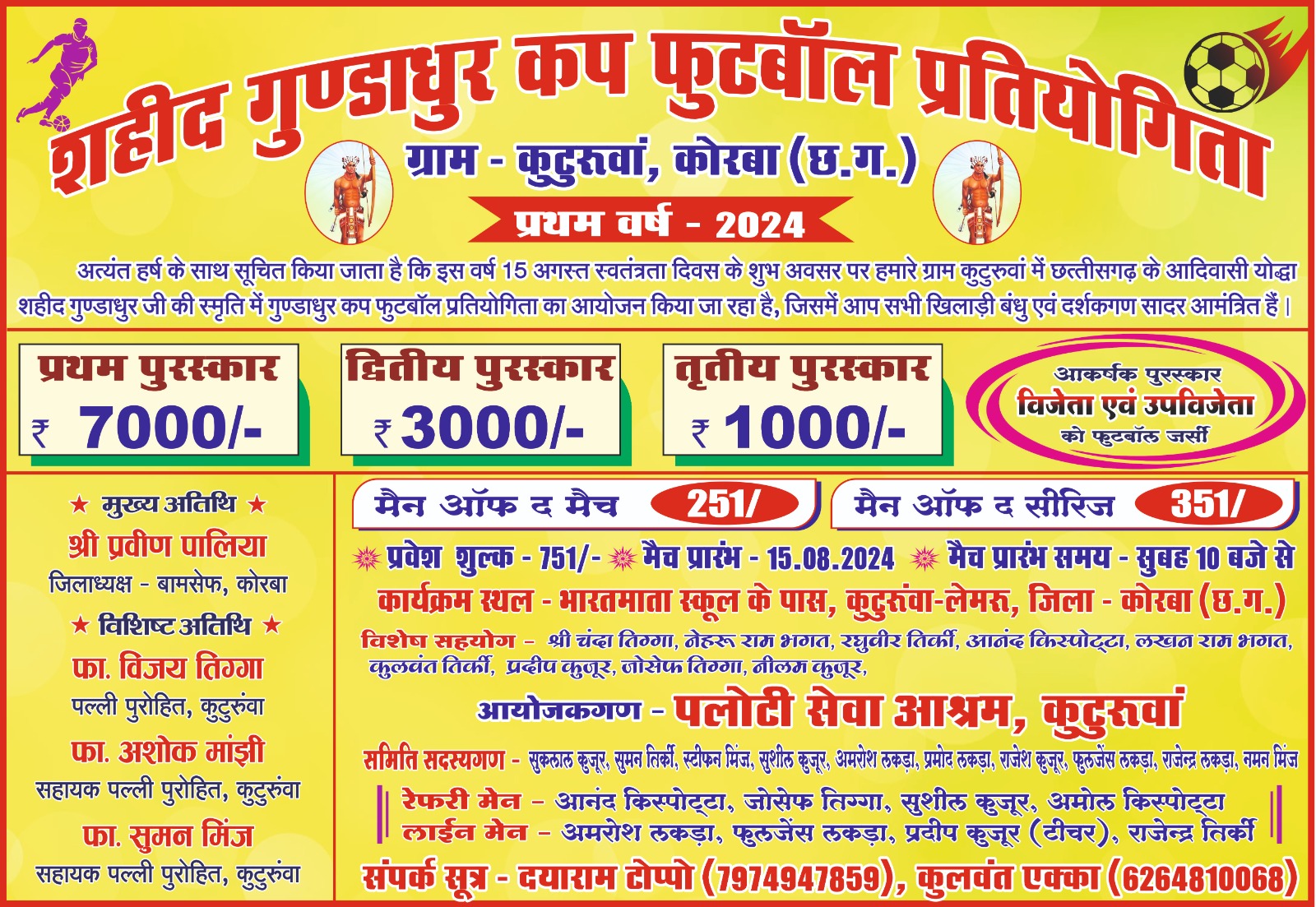 इस टूर्नामेंट में विशेष सहयोग दयाराम टोप्पो और कुलवंत एक्का का रहा, जिनकी मेहनत और समर्पण से यह आयोजन सफलतापूर्वक सम्पन्न हुआ।