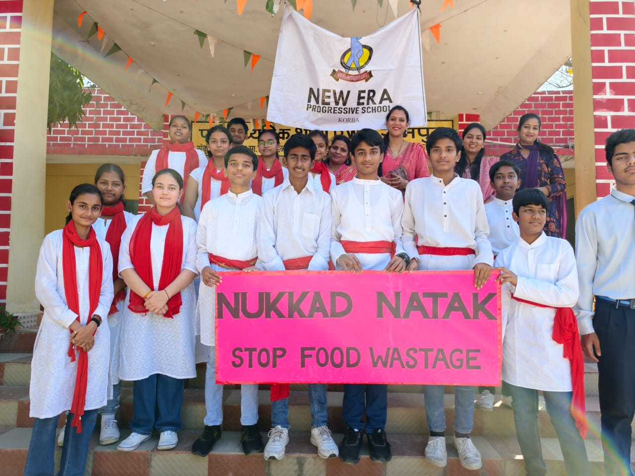 न्यू एरा प्रोगेसिव स्कूल के अंतर्गत कल्चरल क्लब के छात्र छात्राओं ने भोजन की बर्बादी पर बहुत ही सुदंर व सार्थक नुक्कड नाटक के माध्यम से भोजन की बर्बादी को रोकने का संदेश देने का प्रसास किया।