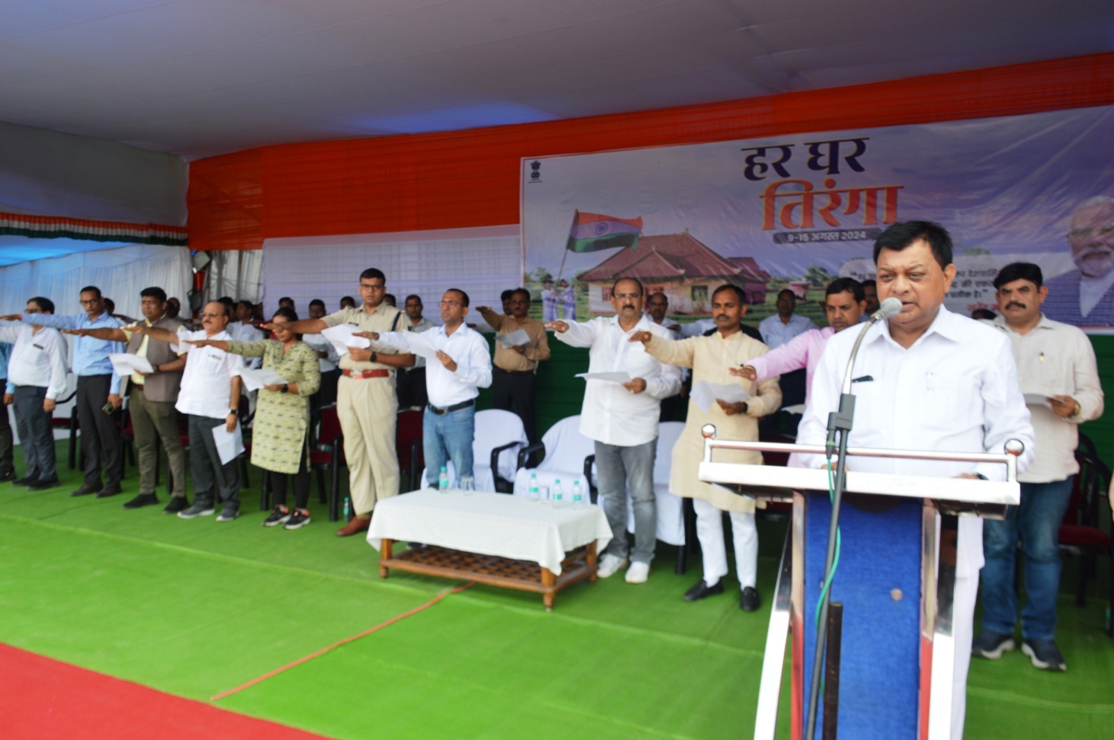कैबिनेट मंत्री श्री देवांगन ने कार्यक्रम में उपस्थित सभी जनप्रतिनिधियों, अधिकारियों-कर्मचारियों, आम नागरिकों, स्कूली बच्चों को हर घर तिरंगा फहराने, भारत के स्वतंत्रता सेनानियों, वीर सपूतों की भावनाओं का सम्मान करने तथा भारत के विकास एवं प्रगति के लिए समर्पित रहने की शपथ दिलाई।