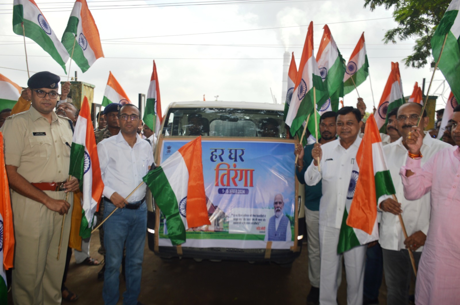 कोरबा 12 अगस्त 2024/ हर घर तिरंगा अभियान के तहत जिले में देशभक्ति से प्रेरित विभिन्न गतिविधियों का आयोजन किया जा रहा है। इसी कड़ी में आज वाणिज्य उद्योग व श्रम मंत्री छत्तीसगढ़ शासन श्री लखन लाल देवांगन की उपस्थिति में कोरबा नगरीय क्षेत्र के घण्टाघर में तिरंगा यात्रा का आयोजन किया गया। कैबिनेट मंत्री श्री देवांगन ने तिरंगा यात्रा को हरी झंडी दिखाकर रवाना किया। यह रैली घंटाघर स्थित ओपन थियेटर मैदान से प्रारम्भ होकर शहर के प्रमुख चौक चौराहों से होते हुए सीएसईबी चौक स्थित एसईसीएल फुटबॉल ग्राउंड में समाप्त हुई।