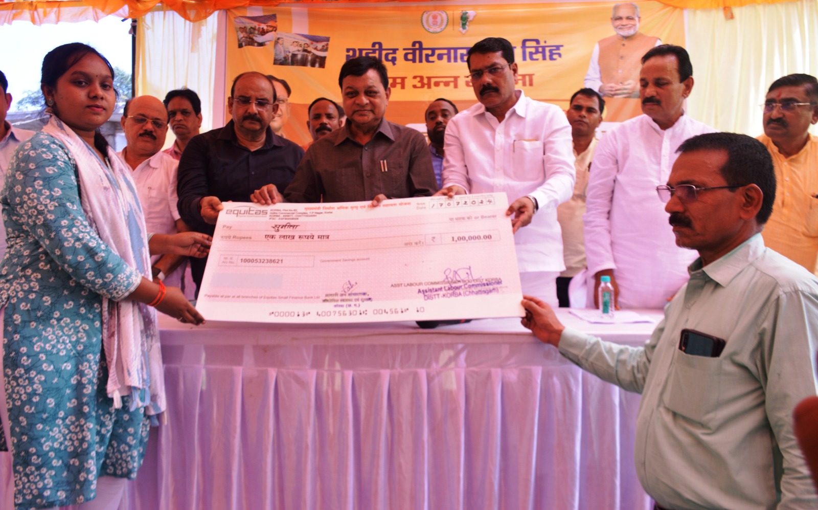 जिसके अंतर्गत छत्तीसगढ़ असंगठित कर्मकार मृत्यु व दिव्यांग सहायता योजना के तहत कमला बाई दास एवं मनीराम यादव को 1-1 लाख का चेक प्रदान किया गया।