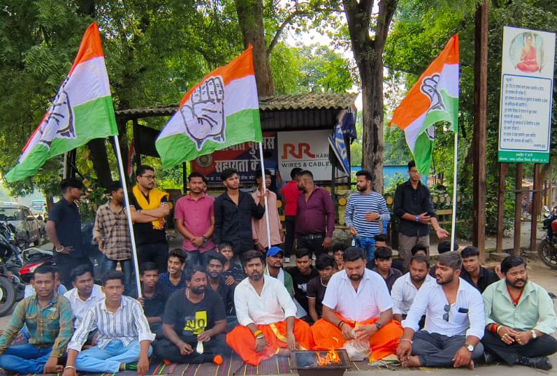कोरबा( न्यूज उड़ान) युवा कांग्रेस ज़िला कोरबा एव एनएसयूआई द्वारा युवा कांग्रेस ज़िला महासचिव मधुसूदन दास एव एनएसयूआई ज़िलाध्यक्ष दीपक वर्मा के संयुक्त नेतृत्व में टीपीनगर चौक में कवर्धा में पुलिस की प्रताड़ना से युवक प्रशांत साहू के मौत एव साथ ही साथ उनके परिजनों,ग्रामीणों पर पुलिसिया अत्याचार को बढ़ावा देने वाले एसपी अभिषेक पल्लव पर कार्यवाही की बजाए प्रमोशन दिया गया।