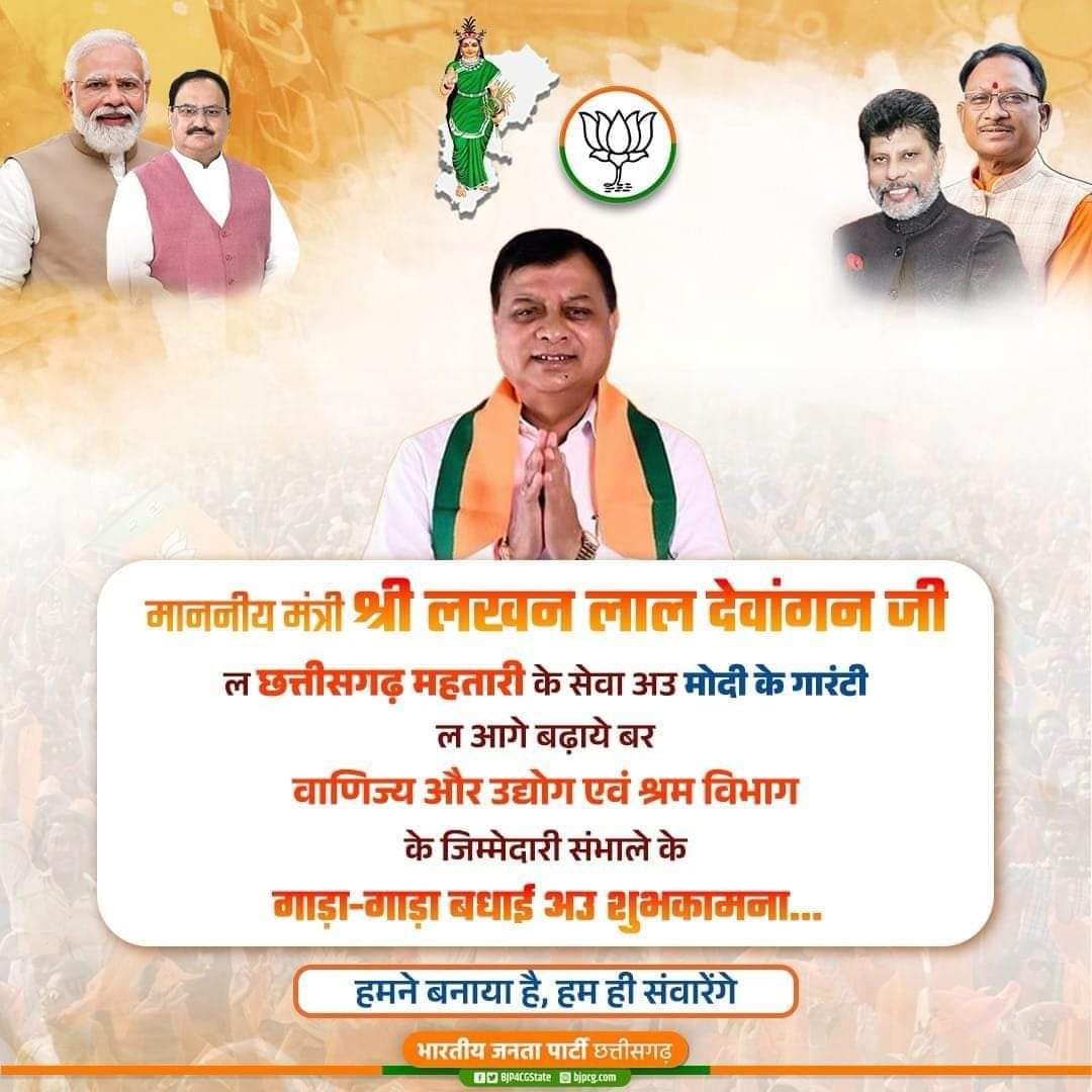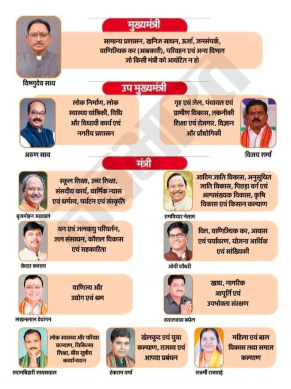 : CM साय कैबिनेट में मंत्रियों के विभागों का हुआ बंटवारा,लखन को मिला वाणिज्य,उद्योग और श्रम विभाग।