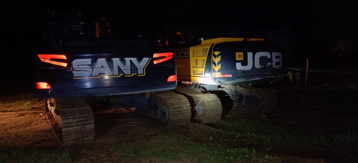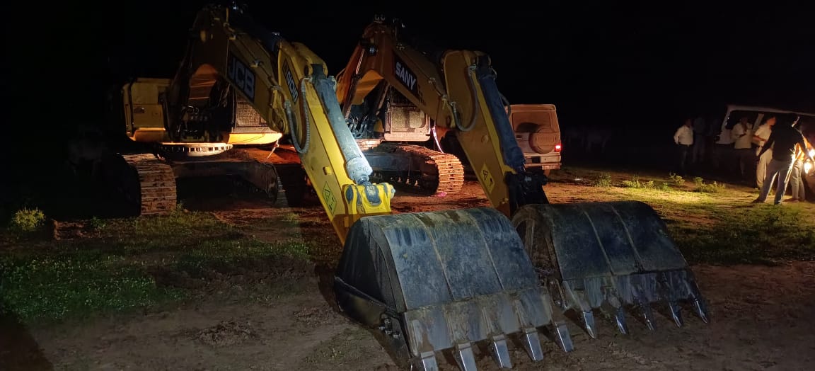 : शिवनाथ से रेत निकालते दो चैन माउंटेन मशीन सहित 8 वाहन जब्त।