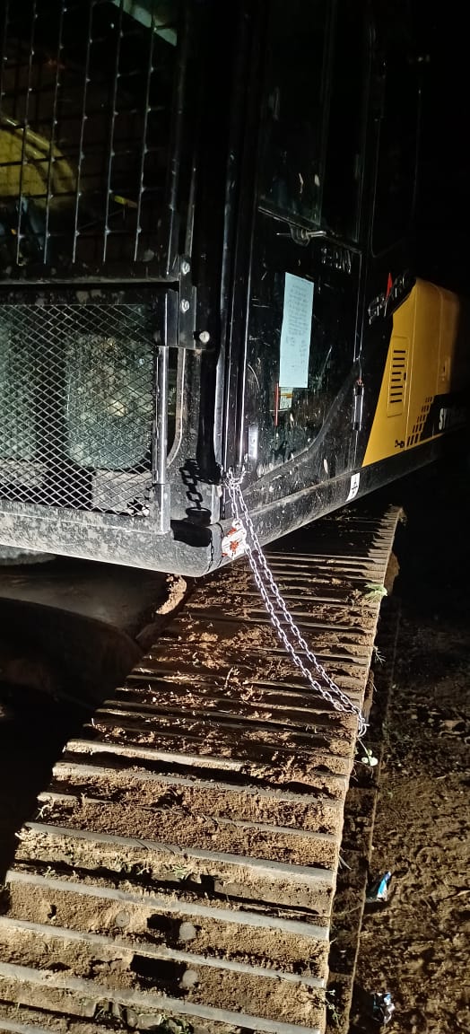 दो नग लोड हाइवा को नदी के रास्ते मे फंसे होने के कारण चैन माउंटेड मशीन मालिक के सुपुर्दगी में दिया गया।
