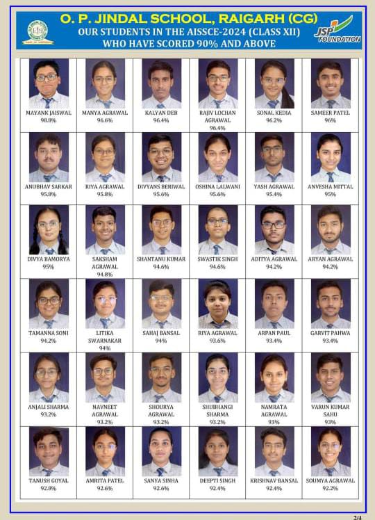 रायगढ़ (न्यूज उड़ान ) जिंदल स्कूल सोमवार को सीबीएसई ने 12वीं बोर्ड के परीक्षा का रिजल्ट जारी किया है जिसमें 12वीं में कॉमर्स और एंप्लाईड मैथ्स में टॉप किया है।