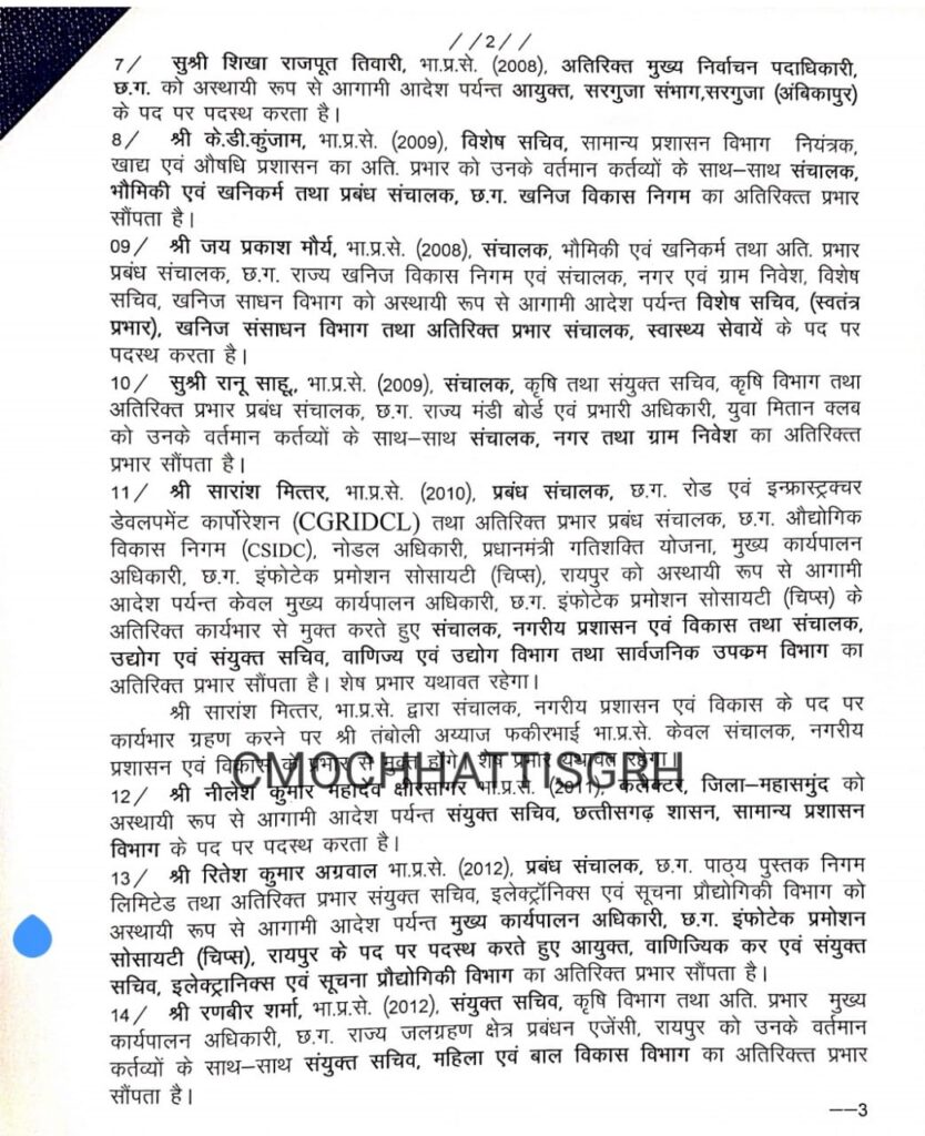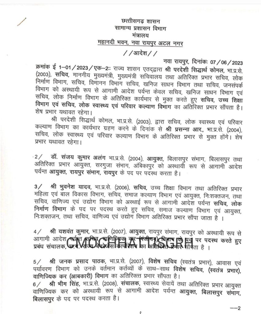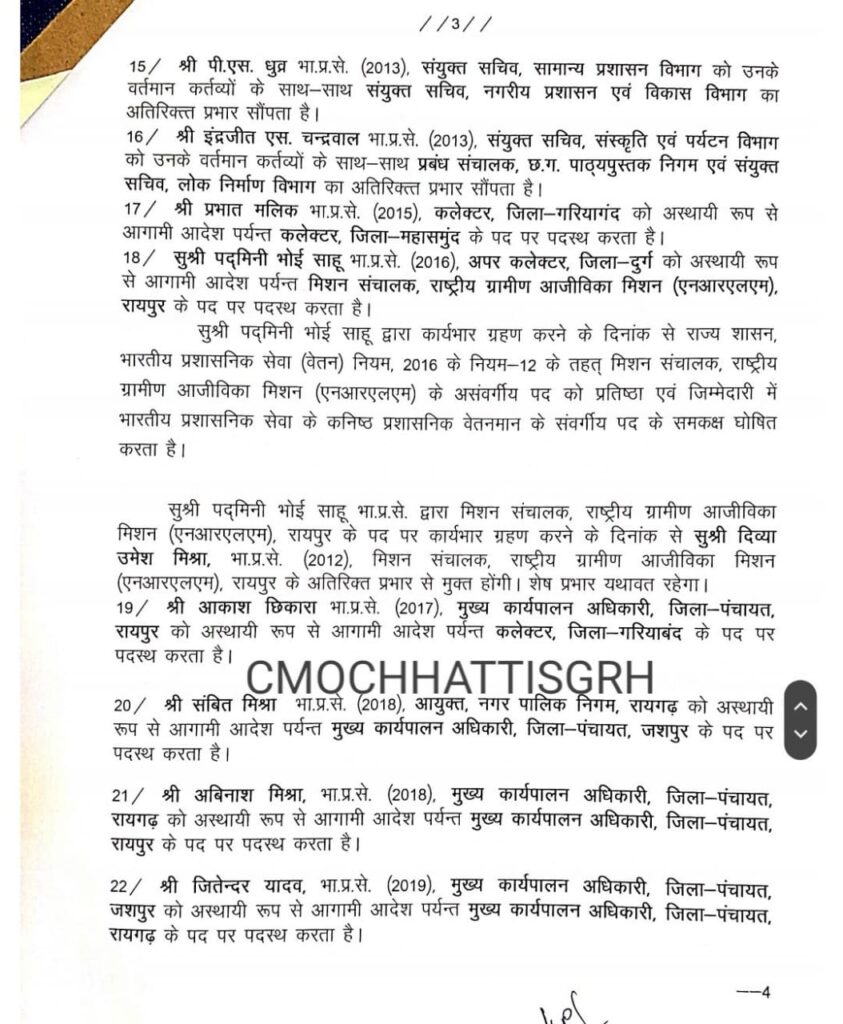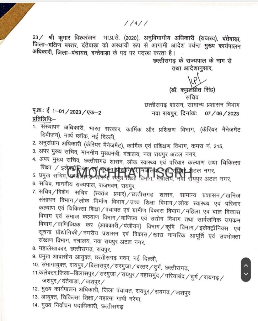: छत्तीसगढ़:- 23 आईएएस अधिकारियों का ट्रांसफर, बदले गए कई जिलों के कलेक्टर, देखें सूची…