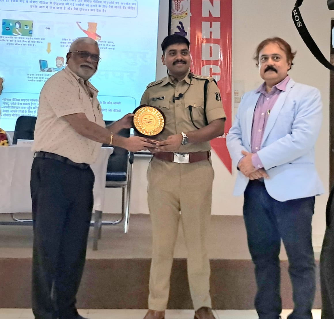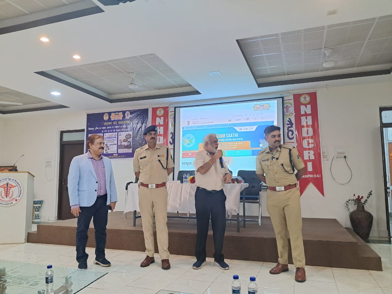 बिलासपुर पुलिस द्वारा लगातार लोगो को किया जा रहा है साईबर संबंधी अपराध के संबंध में जागरूक। बिलासपुर( न्यूज उड़ान) पुलिस द्वारा “चेतना अभियान’’ के तहत लगातार लोगो को नशे के विरूद्ध जानकारी, सडक सुरक्षा से संबंधित जानकारी एवं साईबर संबंधी अपराध से बचाव की जानकारी दी जा रही है जिसके तहत विगत दिनो से साईबर सुरक्षा के तहत अलग अलग स्कूल, कालेज एवं सार्वजनिक स्थानो पर साईबर की पाठशाला लगाकर साईबर संबंधी जानकारी दी जा रही है इस अभियान के तहत आज दिेनांक 19-07-2024 को थाना सकरी क्षेत्र के न्यू होरीजेंटल डेंटल कालेज में चेतना अभियान के तहत साईबर की पाठशाला का आयोजन किया। पुलिस अधीक्षक बिलासपुर रजनेश सिंह (भापुसे) एवं नगर पुलिस अधीक्षक श्री उमेश गुप्ता (भापुसे) के द्वारा कालेज में पढने वाले मेडिकल छात्र एवं छात्राओ तथा फेकेल्टी टीचर को साईबर अपराध के संबंध में सूक्ष्म से सूक्ष्म जानकारी दी गई तथा मेडिकल छात्रो को यह भी समझाईश् दी गई कि किसी भी अनजान व्यक्ति को अपनी व्यक्तिगत जानकारी नही देवे। मोबाईल् मे आए किसी भी लिंक को बिना जानकारी के ओपन नही करे तथा मोबाईल में आए ओटीपी को किसी अन्य व्यक्ति को न बताए, साईबर की पाठशाला में न्यू होरीजेंटल डेंटल कालेज के डीन राणा वर्गीस, कालेज परिषद के सचित डॉ आर के खेत्रपाल, सूर्या पुष्पा फाउंडेशन के अध्यक्ष गौरव शुक्ला, सदस्य टिकेश्वर साव एवं डेंटल कालेज से समस्त प्रोफेसर एवं मेडिकल छात्र छात्राए , थाना प्रभारी निरीक्षक दामोदर मिश्रा एवं थाना सकरी स्टाफ उपस्थित रहे कालेज प्रबंधन द्वारा बिलासपुर पुलिस के द्वारा चलाए जा रहे साईबर पाठशाला की विशेष सराहना की गई,