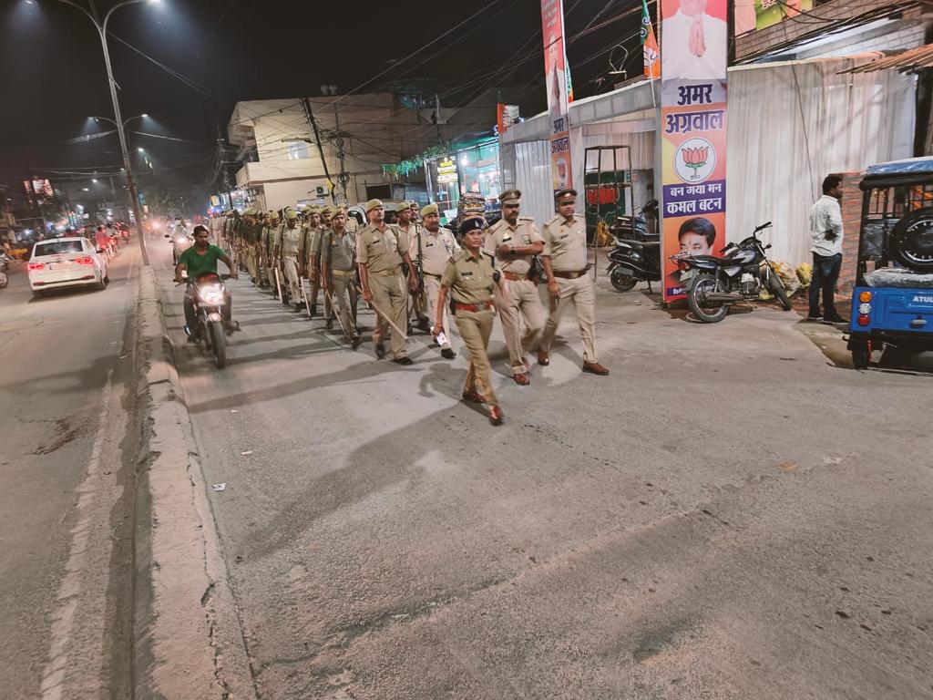 बिलासपुर। अचार संहिता के दौरान शांतिपूर्ण ढंग से चुनाव कराने किया गया पैदल मार्च। पैदल मार्च करने का उद्देश्य निष्पक्ष चुनाव तथा अपराधिक तत्व को हतोत्साहित करना जिले के पुलिस अधीक्षक श्री संतोष कुमार सिंह के द्वारा सभी थाना प्रभारी को आगामी विधानसभा चुनाव तथा दीपावली त्यौहार के मद्देनजर सभी थाना क्षेत्र में पैरामिलिट्री फोर्स के साथ अपराधी घटनाओं को रोकने तथा शांतिपूर्ण ढंग से चुनाव संपन्न कराने तथा अपराधिक तत्वों को हतोत्साहित करने के उद्देश्य से लोकल पुलिस टीम के साथ पैदल मार्च करने निर्देशित किया गया है। इसी तारतम्य में आज अतिरिक्त पुलिस अधीक्षक (शहर) श्री राजेंद्र कुमार जायसवाल, अतिरिक्त पुलिस अधीक्षक(ग्रामीण) अर्चना झा, नगर पुलिस अधीक्षक (सिटी कोतवाली) श्रीमती पूजा कुमार,नगर पुलिस अधीक्षक (सिविल लाइन) श्री संदीप पटेल के नेतृत्व में थाना सरकंडा,सिविल लाइन, तोरवा,तारबाहर से अलग-अलग टीम थाना क्षेत्र में पैदल मार्च पर निकली थी। टीम के द्वारा भीड़भाड़ वाले स्थान तथा क्षेत्र में आने वाले पोलिंग बूथ के आसपास वाले एरिया में पैदल मार्च किया गया पैदल मार्च करने से आम जनों में शांति का माहौल व्याप्त हुआ तथा आपराधिक तत्वों के विरुद्ध कड़ी कारवाई करने के संबंध में मैसेज दिया गया।