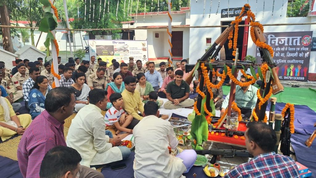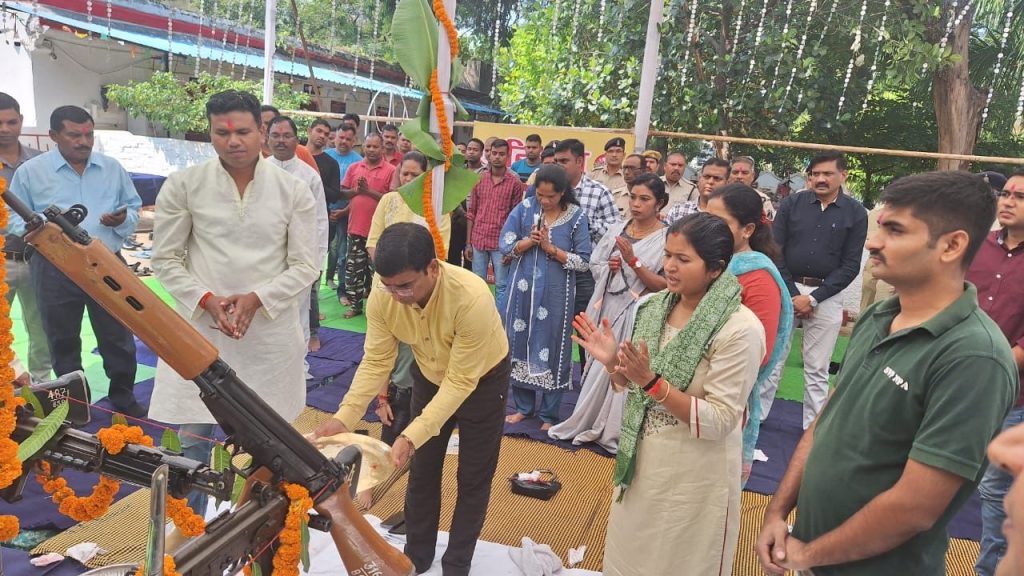 : बिलासपुर पुलिस द्वारा पुलिस लाइन और थाना चौकी में किया गया शस्त्रपूजा